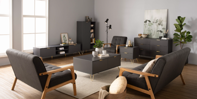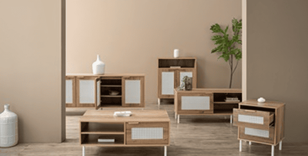 Lome delivers clean silhouettes with a distinctive touch—signature patterned handles that bring unique texture to its wood-like finishes. Compact yet refined, its occasional tables and sideboards offer modern versatility for stylish, detail-driven interiors.
